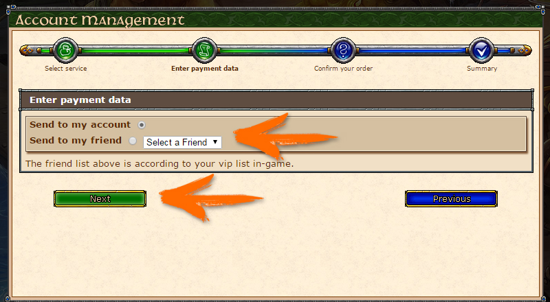 IMPORTANT: In order for your friend to appear in the list, it must be added to your list Vip List in-game, otherwise it will not appear. click in Next. (Click on the image to enlarge.)